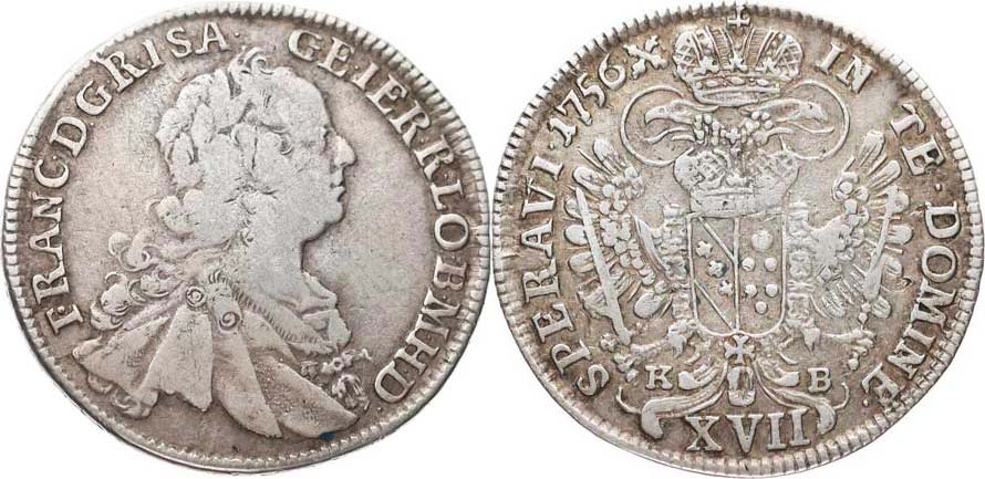 XVII kr. 1756 K-B, Kremnica Husz. 1803_mělká ražba, tém.