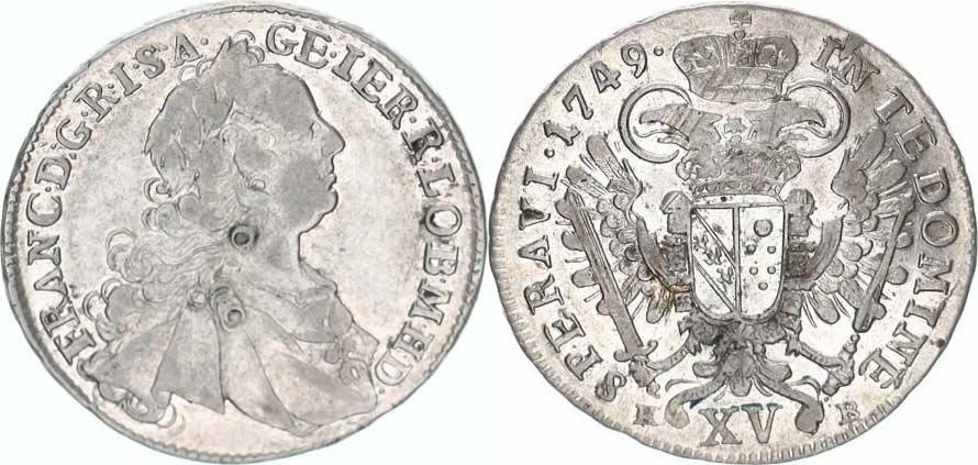XV kr. 1749 K-B, Kremnica "R" Husz. 1807 5,96 g _nep. rys.