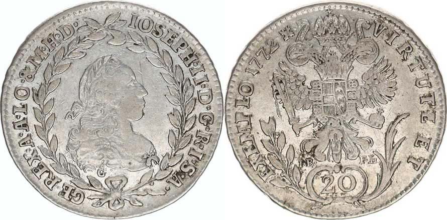 20 kr. 1772 G / IB-FL, Nagybánya_v ploše zbytky RL