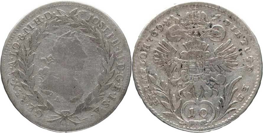 10 kr. 1769 A/C-K, Vídeň "R"_mělce ražen, tém.