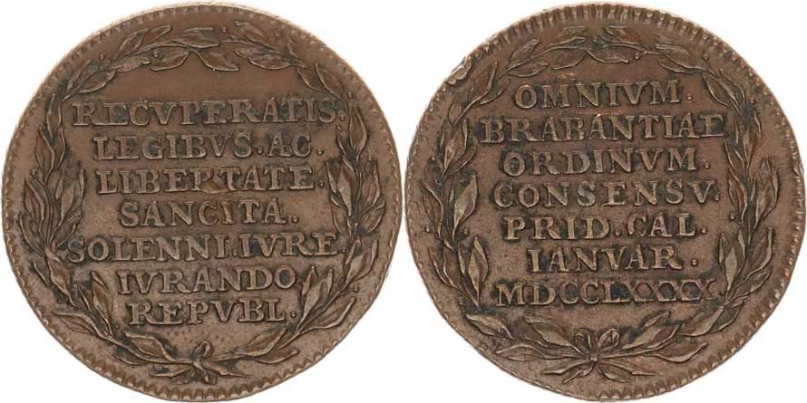 Jeton 1790, na odtržení Flander od Rakouska, 7-mi řádk. nápis ve věnci / 7-mi řádk. nápis ve věnci Cu 34 mm Mont. 2197; LG: XIV/1068; FW.II.11369 "R"