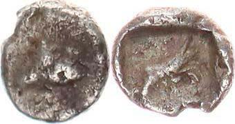 AR trihemitertemorion (3/8 obolu) 0,24 g; Hlava psa zprava / vlk