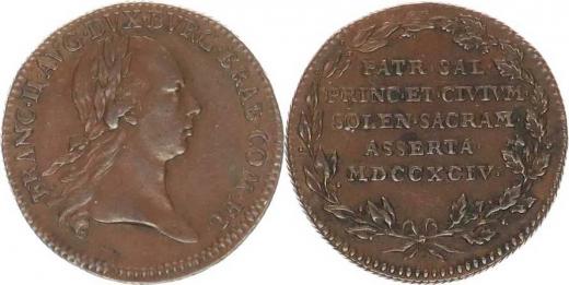 Žeton na holdování v Belgii (Brusel) v roce 1794 bronz 22 mm 3,803 g Novák V/XVII/ M/ 6c