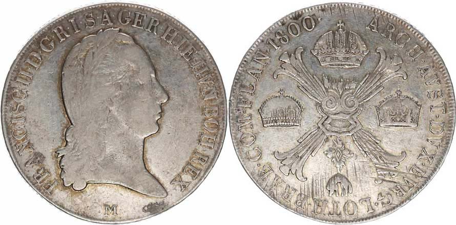 Tolar křížový 1800 M - na hraně: LEGE ET FIDE_mír. just., tém.