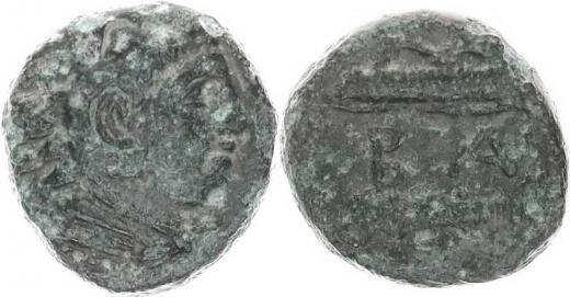 AE 17, hlava Herakla ve lví kůži / toulec a kyj - "B - A" Sear: 6742; Forrer/Weber: 2146