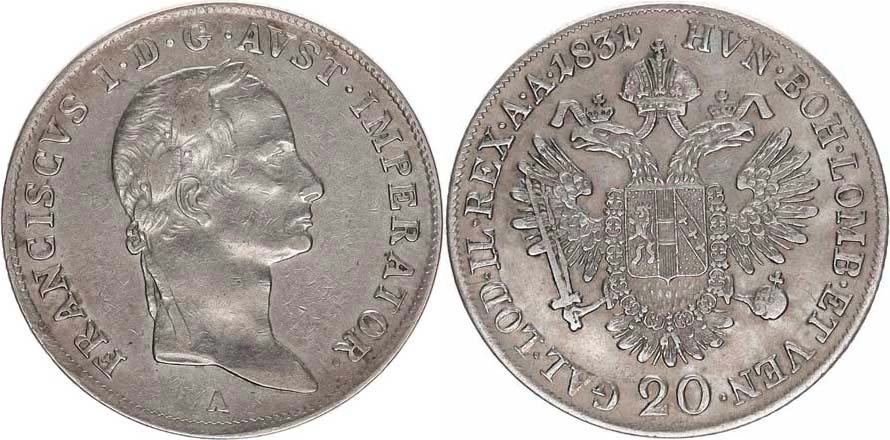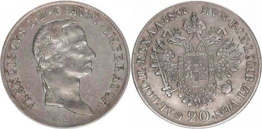 20 kr. 1831 A - stuhy na krku "R"