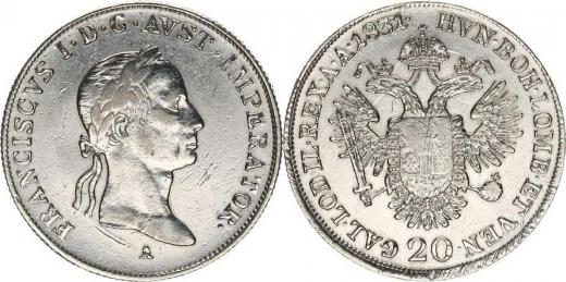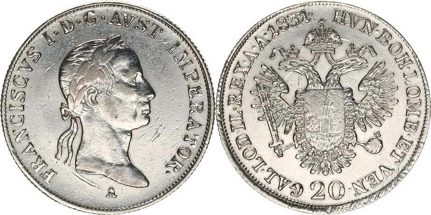 20 kr. 1831 A - vlající stuhy_mír. just.