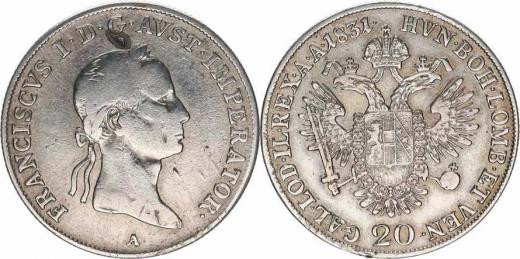20 kr. 1831 A - vlající stuhy_nad hlavou nálitek