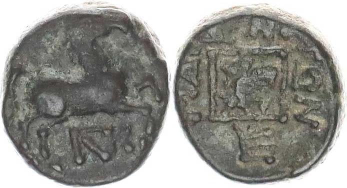 AE 12-13, pádící kůň zprava / opis kolem čtverce s vinnou révou SG: 1636; BMC: 3.65