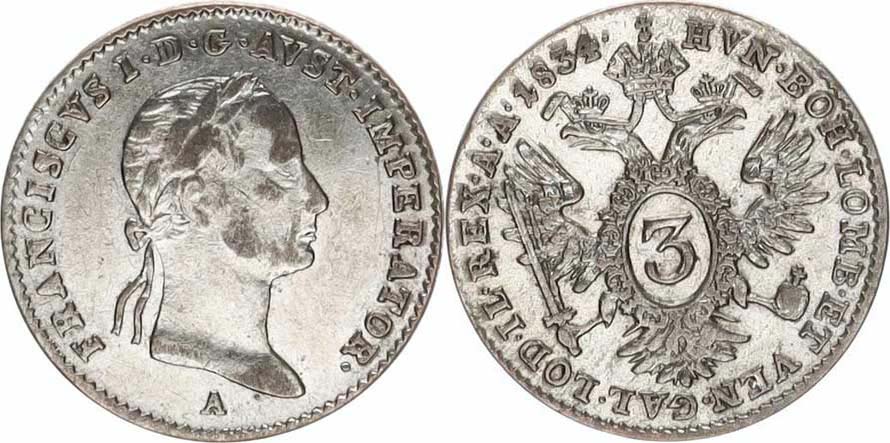 3 kr. 1834 A "RR"