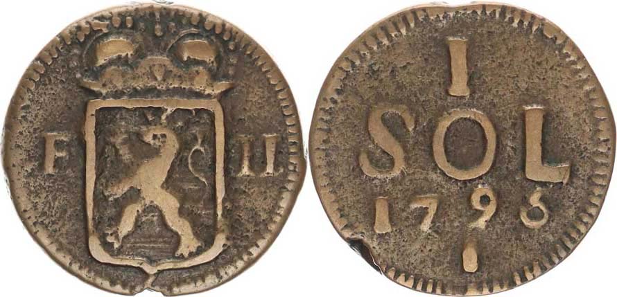 1 Sol 1795 - zn. patrona, pro obležené město Lucemburk "R" _vada materiálu u hr., tém.