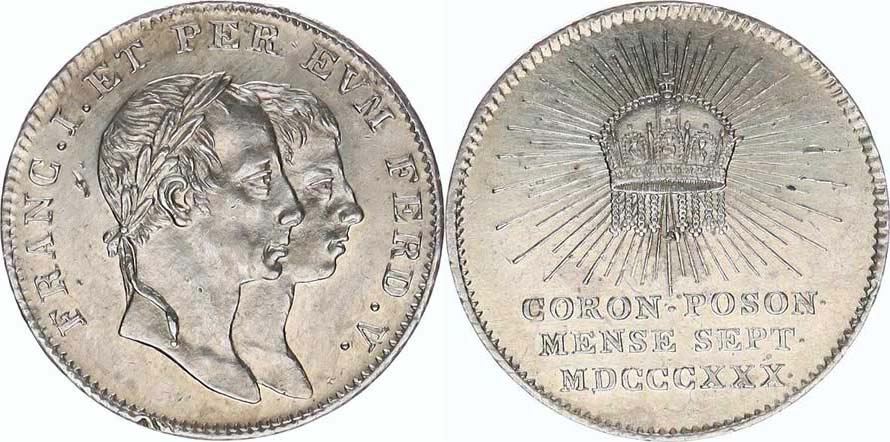 Malý žeton na uherskou korunovaci v Bratislavě 28.9. 1830 ...MENSE. SEPT Ag 20 mm Novotný III d; Nov. XVII I/ A-VI b