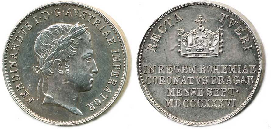 Velký žeton na českou korunovaci 7.9. 1836 v Praze Ag 20 mm Novotný XIX/c; Nov.XVIII/D/3b