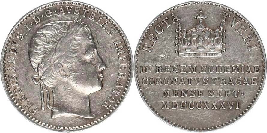 Malý žeton na českou korunovaci 7.9. 1836 v Praze Ag 18 mm Novák XIX/D/4b; Novotný XIX/d
