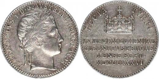 Malý žeton na českou korunovaci 7.9. 1836 v Praze Ag 18 mm