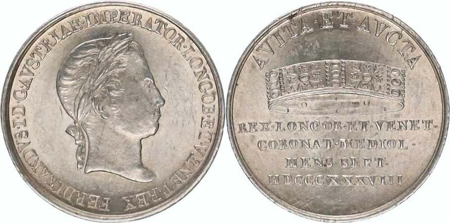 Malý žeton na korunovaci Lombardsko-benátským králem v Miláně 6.9. 1838 Ag 19 mm 3,248 g Novák XVIII/G/9b "R"