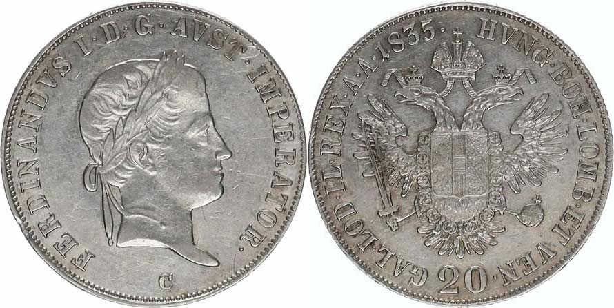 20 kr. 1835 C - FERDINANDVS "R"