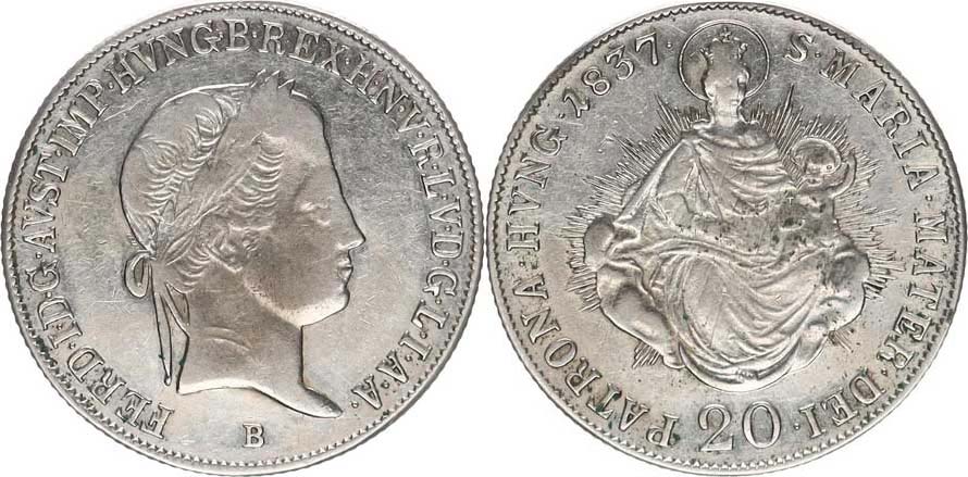 20 kr. 1837 B - Madona_mír. just.