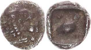 AR trihemitartemorion (3/8 obolu) 0,25 g, Hlava lva zleva / křep elka zprava SNG Berry 1045