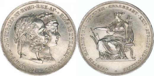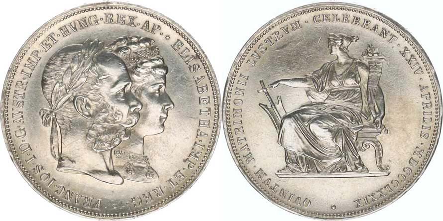 Dvouzlatník 1879 - Stříbrná svatba var.: tečka za ELISABETHA._nep. rys.