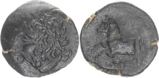 AE 18, Hlava s vavřín. věncem Dia zprava / přední část koně zleva TEP SNG France 2136; BMC: 19.269,18; SG: 5498 5,32 g