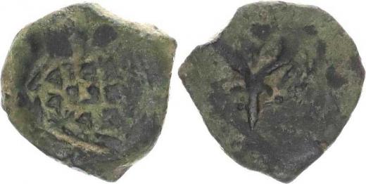 AE prutah, nápis ve věnci / dva rohy hojnosti, mezi nimi granátov é jablko SGI: 6095; BMC 27.190-4; Meshorer 18 2,09 g