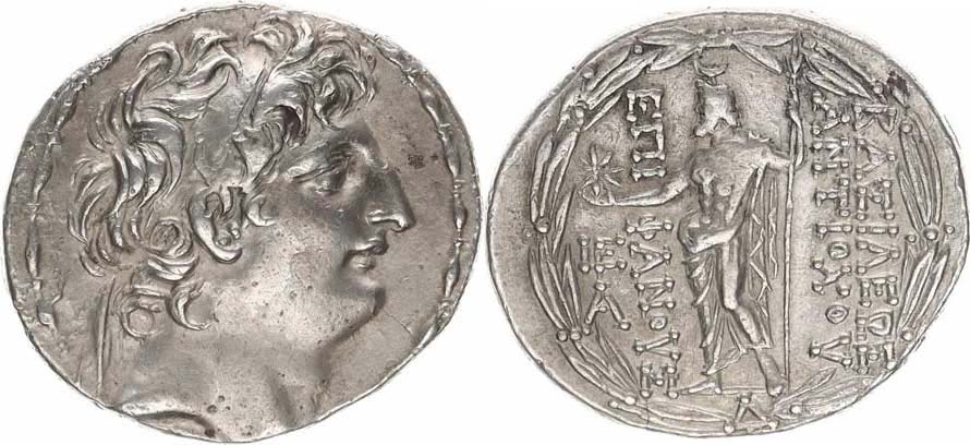 AR tetradrachma, Av. Hlava Antiocha s diadémem zprava / Stojící Z eus zprava drží hvězdu a žezlo Sear 7143 16,312 g