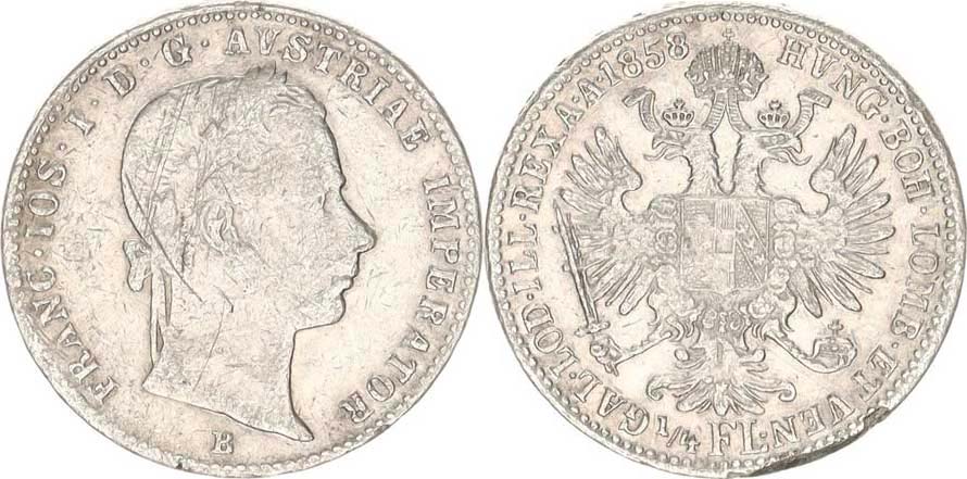 1/4 Zlatník 1858 B "R"_hr., tém.