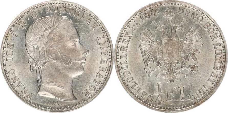 1/4 Zlatník 1865 A "RR" "sbírkový"