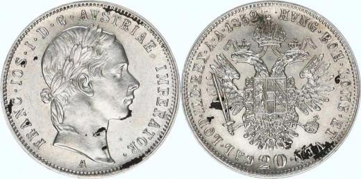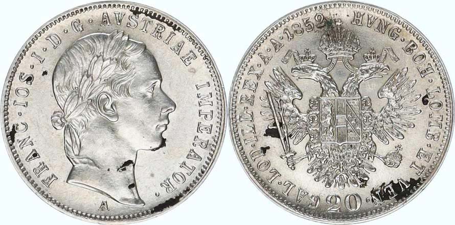 20 kr. 1852 A - hlava vpravo_dr. skvr., jinak