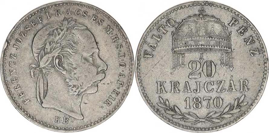 20 kr. 1870 KB "RR"_dr. hr.