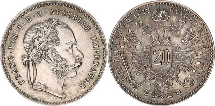 20 kr. 1872 b.zn. "RR" "sbírkový"
