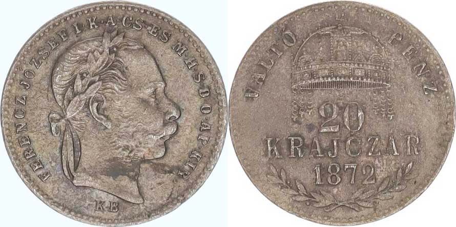 20 kr. 1872 KB "R"_tém.