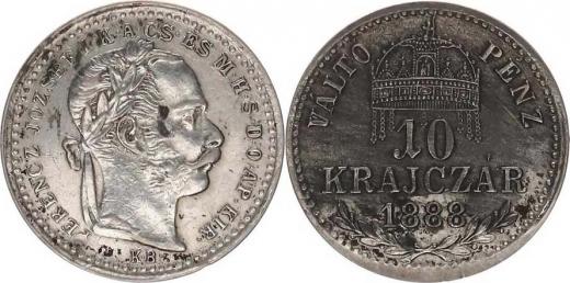 10 kr. 1888 KB "R"_v Rv tmavá patina, jinak