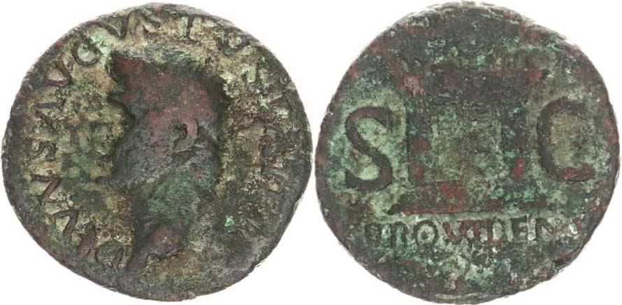 As AE 29, hlava zleva DIVS PATER / oltář ROVITENTIA - SC ražba za Tiberia 9,871 g