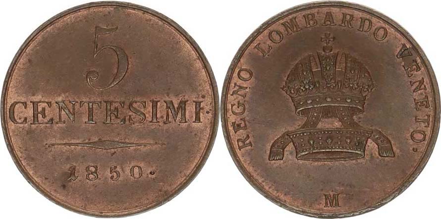 5 Centesimi 1850 M