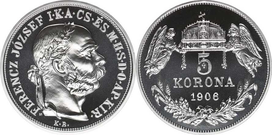 5 Koruna 1906 KB - BP "Novoražba 2023" Ag 999 24,4 g ražba: Mincovna Budapešť (Magyar Penzvero Zrt.) kapsle