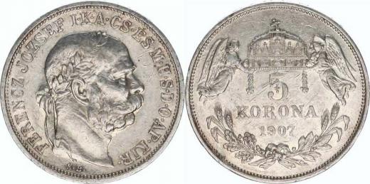 5 Koruna 1907 KB_škr., tém.