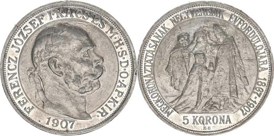 5 Koruna 1907 KB - korunovační "sbírková"_zc. nep. hr.