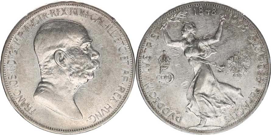 5 Koruna 1908 b.zn. - jubilejní_vlas. rys., hr.