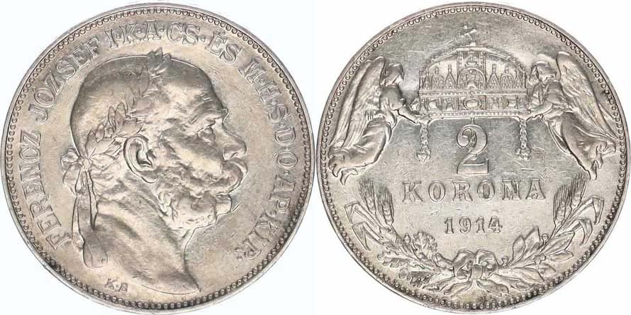 2 Koruna 1914 KB "R"_patina