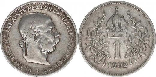 1 Koruna 1892 b.zn. "R" 4,785 g_tém.