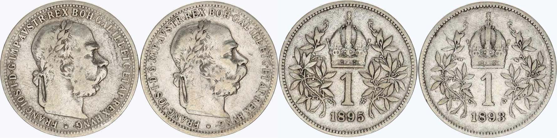 1 Koruna 1893, 1895 obě b.zn. 2 ks