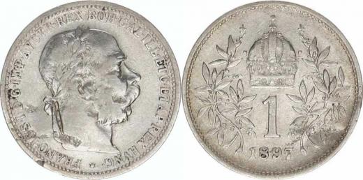 1 Koruna 1897 b.zn._vada kovu v av.
