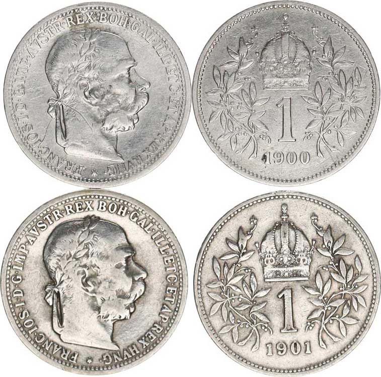 1 Koruna 1900, 1901 obě b.zn. 2 ks