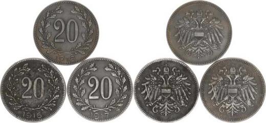 20 hal. 1916, 1917, 1918 vše b.zn. - Fe 3 ks