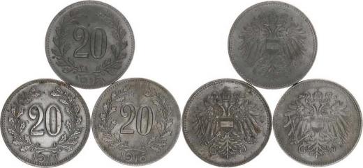 20 hal. 1916, 1917, 1918 vše b.zn. - Fe 3 ks