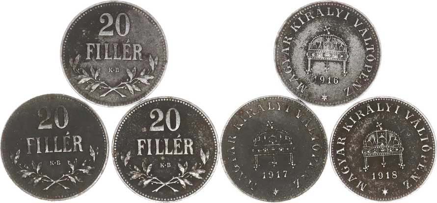 20 Fillér 1916, 1917, 1918 vše KB 3 ks_patina