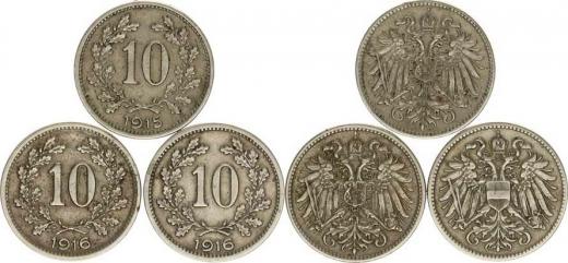 10 hal. 1915, 1916 starý +nový znak vše b.zn. 3 ks