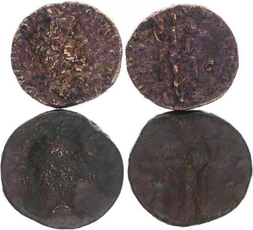AE 30, hlava zprava / stoj. Neptun? s trojzubcem mezi SC 2/ AE 32, hlava zprava / stoj. Soles obětuje u oltáře, SC 2 ks